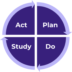 Change takes place through rapid Plan-Do-Study-Act (PDSA) cycles. PDSA cycles are intended to be quick, iterative and reflective. Each PDSA cycle is like a small experiment, supported through thoughtful planning and documentation. PDSA cycles create a meaningful pathway for testing and implementing changes that lead to improvement. Documenting each step of the PDSA cycle is important for learning and disseminating best practices.