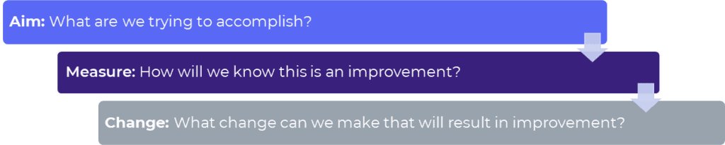 We use the Model for Improvement in our approach to CQI. This is a simple, powerful tool for driving improvement. This model is built around three primary questions: